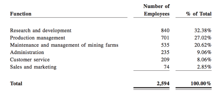 On the marketing front, Bitmain states that they rely mostly on ‘word-of-mouth’ branding, as they have “only” a team of 74 people for sales and marketing. Full breakdown: